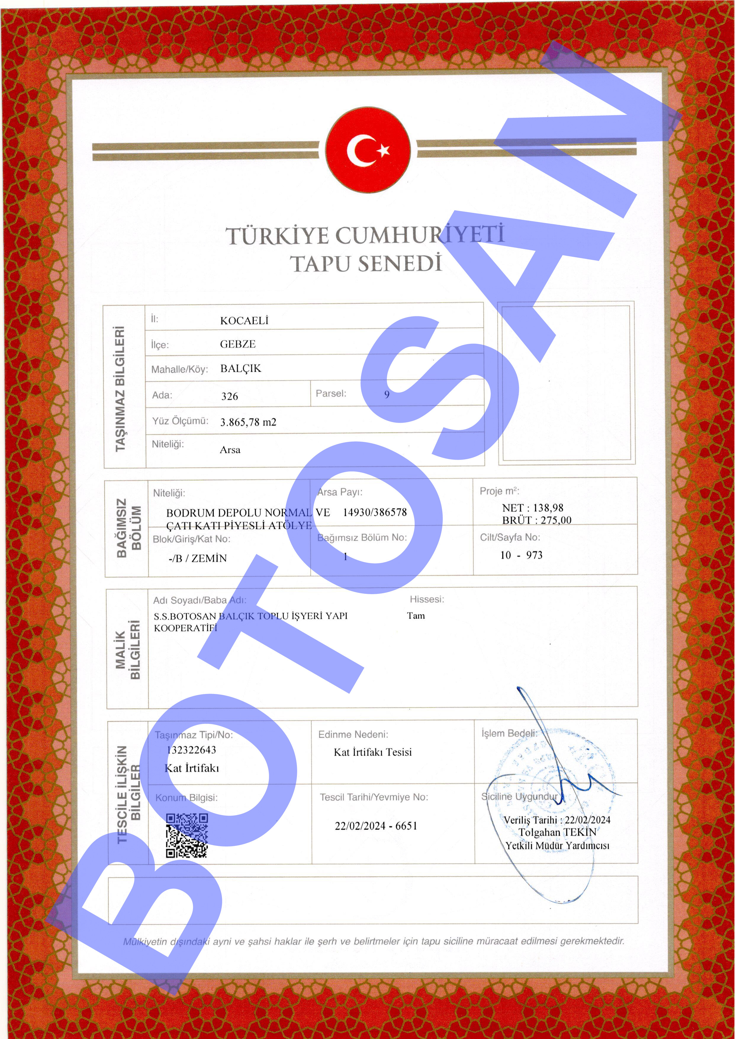 326-9 PARSEL KAT İRTİFAKLI TAPULARI C3